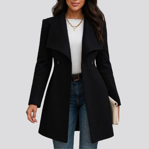 Isabella-uldsfrakken kombinerer klassisk elegance med moderne minimalisme. Den skræddersyede pasform og den brede krave skaber et flatterende og stilrent look, perfekt til både hverdag og mere formelle anledninger.