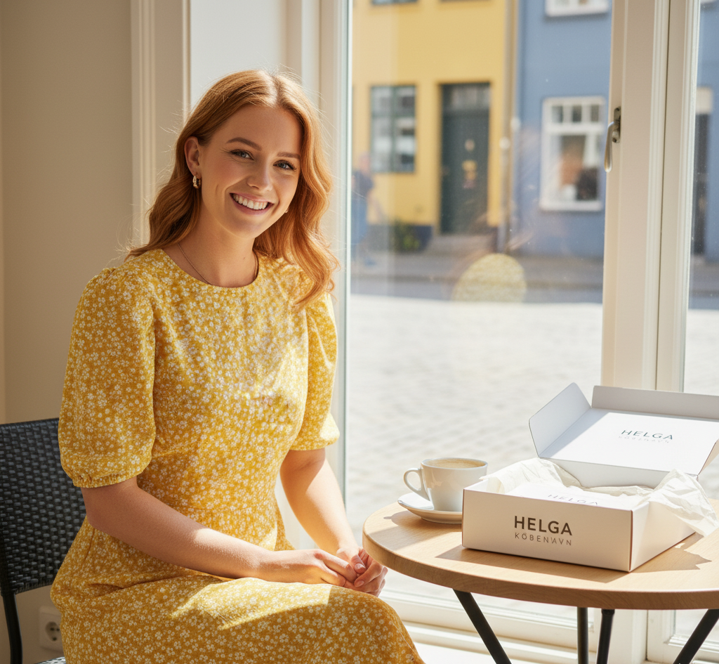 Jeg er utrolig glad for min nye gule kjole! Farven er helt fantastisk, og mønsteret er så smukt. Den sidder perfekt og er meget behagelig at have på en solskinsdag. Kvaliteten virker virkelig luksuriøs. Absolut et nyt yndlingskøb! -